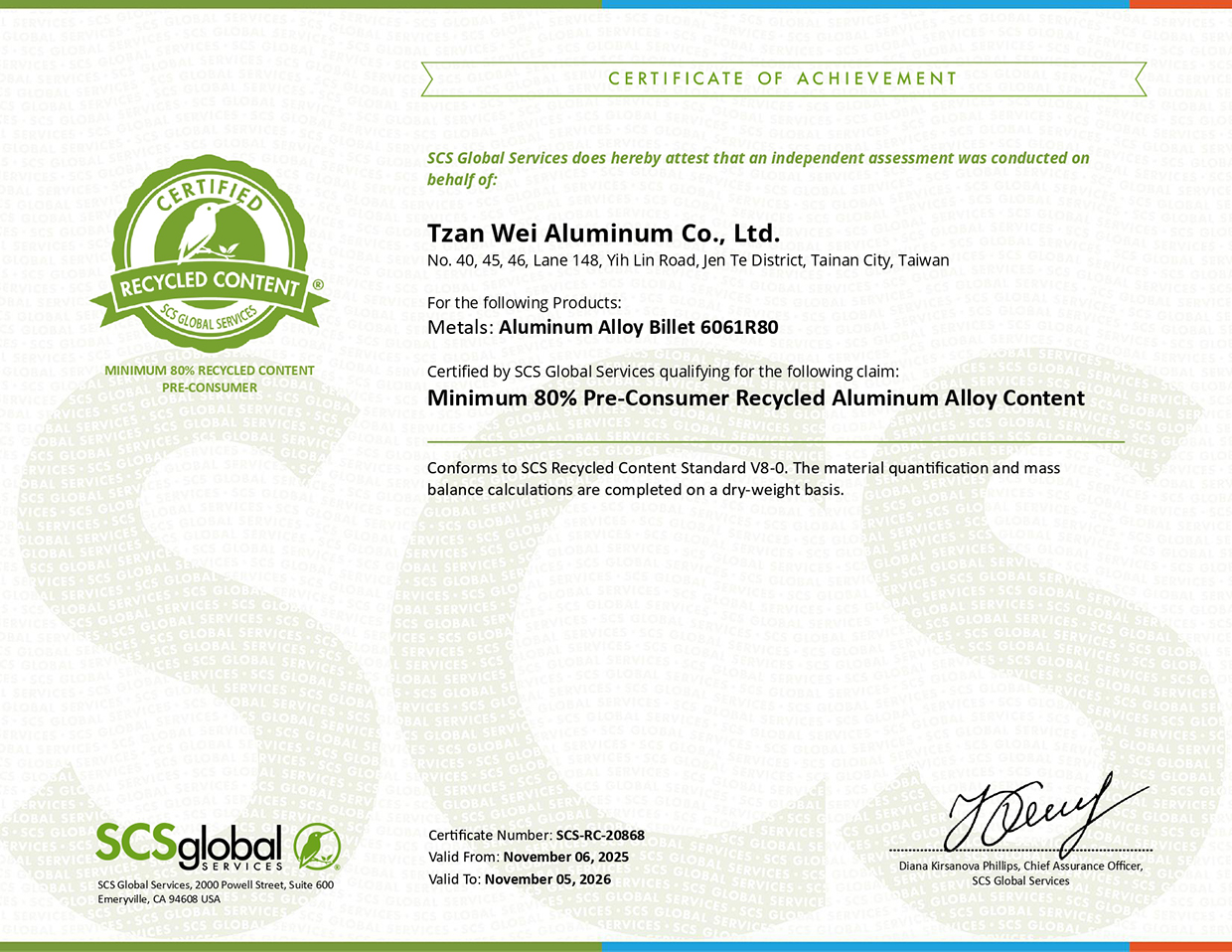 目前擁有三個擠錠熔鑄以及均質化處理的廠區,鋁擠錠年產能可達到18萬公噸。展維團隊秉持永續經營理念,